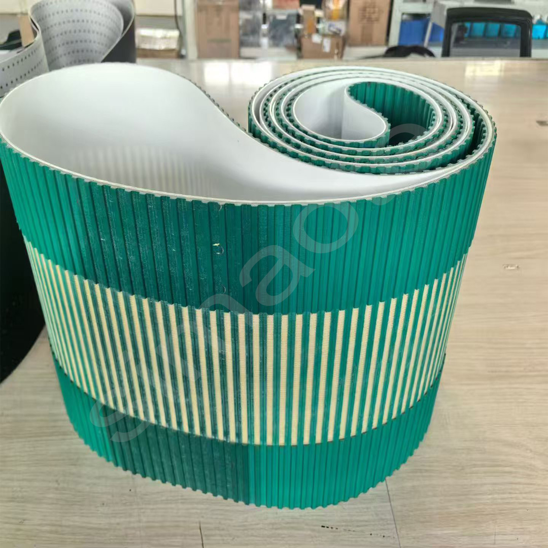 橡膠同步帶傳動是由一根內周表面設有等間距齒形的環(huán)行帶及具有相應吻合的輪所組成。它綜合了帶傳動、鏈傳動和齒輪傳動各自的優(yōu)點。轉動時,通過帶齒與輪的齒槽相嚙合來傳遞動力。 傳輸龍同步帶傳動具有準確的傳動比,無滑差,可獲得恒定的速比,傳動平穩(wěn),能吸振,噪音小,傳動比范圍大,一般可達1:10。允許線速度可達50M/S,傳遞功率從幾瓦到百千瓦。傳動效率高,一般可達98%,結構緊湊,適宜于多軸傳動,不需潤滑,無污染,因此可在不允許有污染和工作環(huán)境較為惡劣的場所下正常工作。 傳輸產品廣泛用于紡織、機床、煙草、通訊電纜、輕工、化工、冶金、儀表儀器、食品、礦山、石油、汽車等各行業各種類型的機械傳動中。橡膠同步帶的特點   (1)傳動準確,工作時無滑動,具有恒定的傳動比;  (2)傳動平穩(wěn),具有緩沖、減振能力,噪聲低;  (3)傳動效率高,可達0.98,節(jié)能效果明顯;  (4)維護保養方便,不需潤滑,維護費用低;  (5)速比范圍大,一般可達10,線速度可達50m/s,具有較大的功率傳遞范圍,可達幾瓦到幾百千瓦;  (6)可用于長距離傳動,中心距可達10m以上。橡膠同步帶傳動的主要失效形式  ①帶體疲勞斷裂;   ②帶齒剪斷和壓潰;   ③帶側、帶齒磨損、包布剝離;   ④承載層伸長、節(jié)距增大、形成齒的干涉、爬齒;  ⑤沖擊、過載使帶體斷裂。